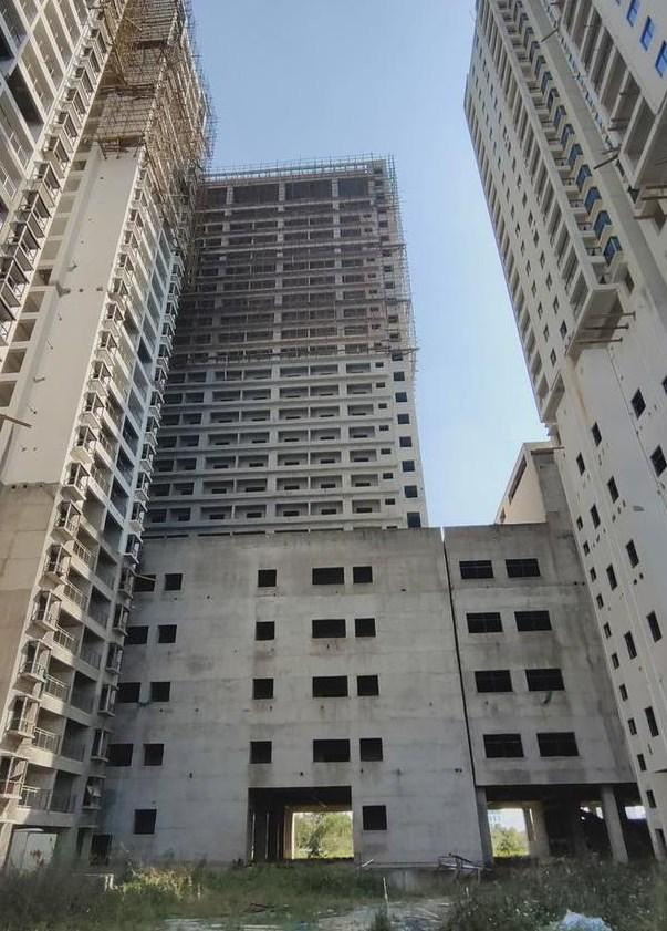 到现在,主体封顶了,部分楼栋外墙也装修好了,可它就是一个烂尾楼。
